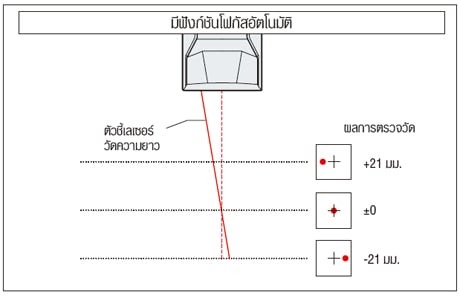 *กล้องในตัวใช้เพื่อการตรวจสอบระยะโฟกัสโดยใช้เลเซอร์พอยน์เตอร์ การทำโฟกัสอัตโนมัติจะทำโดยการคำนวณระยะโฟกัสจากตำแหน่งพอยน์เตอร์ การวัดนี้อาจทำไม่ได้ในบางกรณีเนื่องจากชนิดวัสดุ รูปร่าง และพื้นผิวของชิ้นงาน