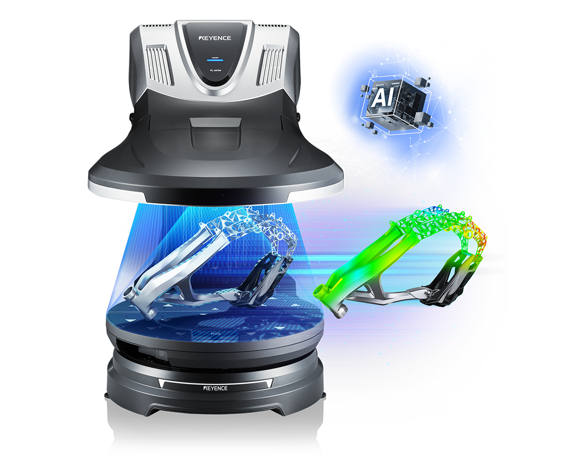 เครื่องมือวัดพิกัดสแกนเนอร์ 3D รุ่น VL-800 ซีรีส์ เป็นเครื่องแรกในซีรีส์ที่มาพร้อม 3D-AI ด้วยการสนับสนุนจาก AI ข้อมูล 3D คุณภาพสูงจึงส่งตรงถึงผู้ใช้ทุกคนได้อย่างง่ายดาย มาพร้อมฟังก์ชันใหม่ที่เป็นรายแรกของโลก นั่นคือคำแนะนำในการวิเคราะห์ โดยฟังก์ชันนี้จะมี AI แนะนำวิธีการวัดที่เหมาะสมสำหรับรูปร่างของชิ้นงาน นอกจากนี้ การเปรียบเทียบการสแกนชิ้นงานกับข้อมูล CAD ของ 3D ยังช่วยให้มองเห็นความผิดปกติและความโก่งงอได้ไม่ยาก และยังสามารถใช้ข้อมูล 3D คุณภาพสูงที่ได้มาเพื่อทำวิศวกรรมย้อนกลับได้อย่างรวดเร็วและง่ายดายยิ่งขึ้นอีกด้วย