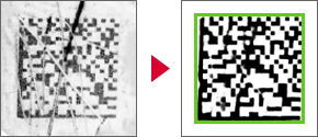เมื่อใช้เลนส์กล้องทั่วไป มุมของภาพที่อ่านได้จะบิดเบี้ยวและใช้งานไม่ได้สำหรับการอ่านโค้ด แต่เลนส์ถ่ายภาพที่พัฒนาขึ้นใหม่ของ KEYENCE จะทำให้สามารถใช้พื้นที่ทั้งหมดที่เซนเซอร์ภาพ CMOS จับภาพได้อย่างมีประสิทธิภาพ จึงมั่นใจได้ว่าจะสามารถอ่านได้แม้ในส่วนที่เป็นมุมของภาพ