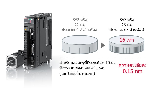 ที่ 26 บิต ความละเอียดของเอ็นโค้ดเดอร์จะสูงกว่ารุ่นทั่วไป 16 เท่า โดยมีพัลส์ประมาณ 67 ล้านพัลส์ต่อรอบ การเคลื่อนไหวจึงราบรื่นขึ้นและการหยุดจะมีความแม่นยำยิ่งขึ้น