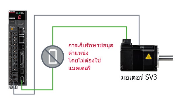 เรียนรู้เกี่ยวกับระบบเซอร์โว SV3 ซีรีส์ ที่รองรับ EtherCAT® ซึ่งเป็นโปรโตคอลเครือข่ายที่ใช้งานทั่วโลก นอกจากการปรับปรุงประสิทธิภาพขั้นพื้นฐานที่เกี่ยวข้องโดยตรงกับการทำงานของอุปกรณ์แล้ว ประสิทธิภาพโดยรวมยังเพิ่มขึ้นอย่างมากด้วยการตอบสนองของเซอร์โวแอมพลิฟายเออร์ที่เพิ่มขึ้น 1.2 เท่า เป็น 3.1 kHz ความละเอียดของเอ็นโค้ดเดอร์เซอร์โวมอเตอร์ที่เพิ่มขึ้น 16 เท่า เป็น 26 บิต และความเร็วในการหมุนของมอเตอร์ที่เพิ่มขึ้น 1.2 เท่า เป็น 7,000 rpm เมื่อใช้งานกับ PLC รุ่น KV-X ซีรีส์ ของ KEYENCE การติดตามของ SV3 ซีรีส์ จะมีความเร็วสูงที่รอบการทำงาน 62.5 µs ซึ่งจะช่วยให้การทำงานมีความฉับไวและแม่นยำยิ่งขึ้น นอกจากนี้ เพื่อเพิ่มประสิทธิภาพในการบำรุงรักษา มอเตอร์จึงไม่ต้องพึ่งพาแบตเตอรี่และมีฟังก์ชันการตรวจสอบอายุการใช้งานติดตั้งมาให้ด้วย