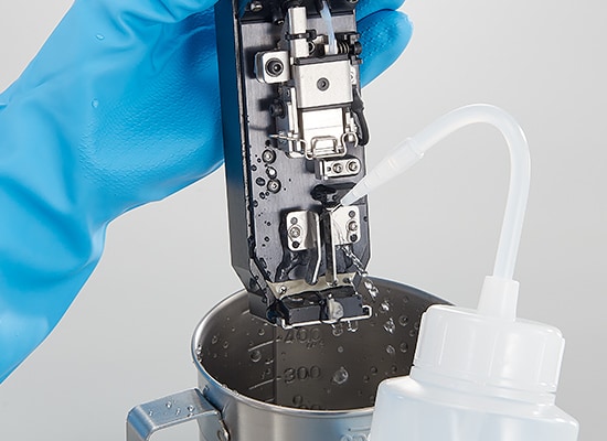 นอกจากการทำความสะอาดทางลำเลียงหมึก แล้ว ชิ้นส่วนที่สำคัญของหัวพิมพ์ก็ถูกทำความ สะอาดด้วยแรงดันสูง การทำความสะอาดด้วยมือ จึงไม่จำเป็น