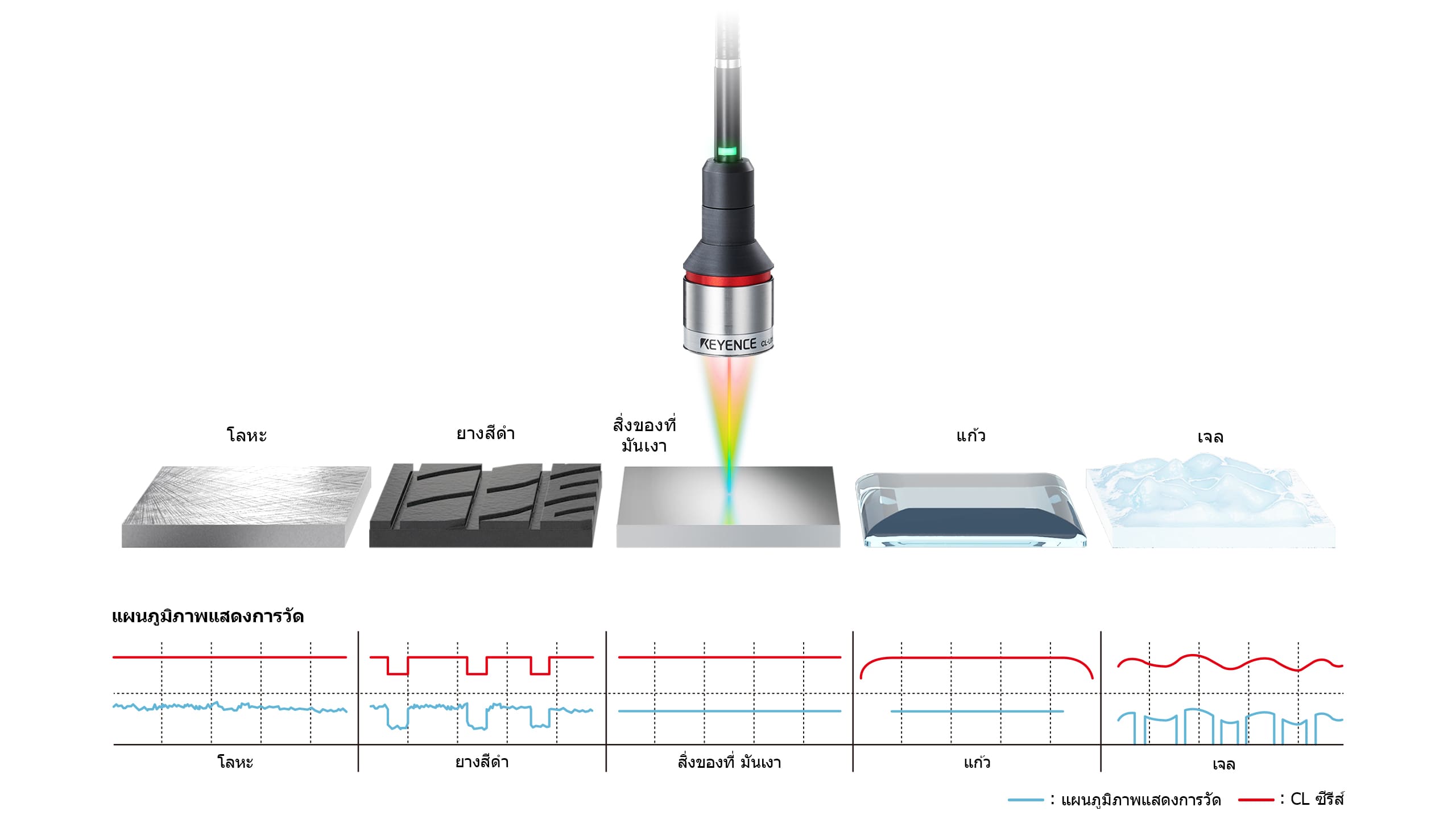 เซนเซอร์วัดระยะเเบบคอนโฟคอล CL-3000 ซีรีส์ เป็นเซนเซอร์วัดระยะ 1 มิติ เเบบกะทัดรัดที่มาพร้อมวิธีเฉพาะที่ทำให้สามารถวัดด้วยความแม่นยำสูงทุกวัสดุหรือพื้นผิวต่างๆ การใช้เซนเซอร์คอนโฟคอลจะช่วยให้การวัดมีความเสถียรบนวัสดุที่หลากหลาย ตั้งเเต่ยางสีเข้มไปจนถึงฟิลม์ใส โดยไม่จำเป็นต้องปรับการติดตั้งหรือการตั้งค่าการวัด เซนเซอร์ถูกออกแบบให้มีเเค่เฉพาะเลนส์ภายในหัวเซนเซอร์ ส่งผลให้มีขนาดกะทัดรัดเเละน้ำหนักเบา เหมาะสำหรับติดตั้งพื้นที่แคบจำกัด หรือบนหุ่นยนต์ ส่วนอุปกรณ์อิเล็กทรอนิกส์ทั้งหมดถูกออกแบบให้เเยกออกห่างจากตำเเหน่งวัดในหน่วยออปติคอล ส่งผลให้ได้ผลลัพธ์ที่มั่นคงที่ไม่ได้รับผลกระทบจากความร้อนเเละสัญญาณรบกวนทางไฟฟ้า เเละมีฟังก์ชั่นอื่นๆ เช่น การประมวลผลจุดสี่จุดเเละการปรับเเนวเเกนเเสง เซนเซอร์ซีรีส์นี้เหมาะสำหรับทุกอุตสาหกรรมเเละการใช้งานที่หลากหลาย รวมถึงการวัดตำเเหน่งเเละความหนา เเละสามารถวัดพื้นผิวโค้ง ผิวไม่สม่ำเสมอ หรือเเม้กระทั่งพื้นผิวขรุขระได้อย่างเเม่นยำ