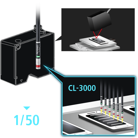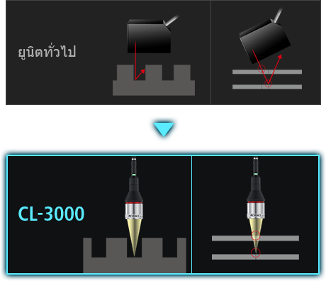 CL-3000 ใช้เทคโนโลยีคอนโฟคอลแบบหลายสี ด้วยช่วงการวัดที่กว้างขึ้นและคุณสมบัติเชิงมุมที่ดีขึ้น จึงทำให้การวัดบนพื้นผิวหรือรูปร่างทุกชนิดมีความแม่นยำสูงโดยไม่ต้องกังวลเรื่องการติดตั้ง