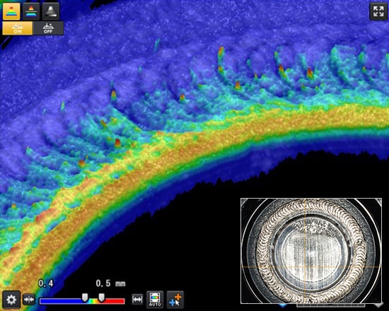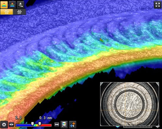 ในการสร้างภาพ 3D ตำแหน่งของโปรไฟล์ 2D จะได้รับการปรับในทิศทาง X, Z และ θ ซึ่งจะช่วยขจัดผลกระทบจากการสั่นสะเทือน ความเยื้องศูนย์ และความโค้งงอของชิ้นงานได้ จึงสามารถสร้างภาพที่เหมาะสมสำหรับการตรวจสอบได้