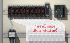 งานเดินสายอาจเสียเวลามาก ตัวอย่างเช่น การนำเข้าห้าเอาต์พุต ไปยัง PLC