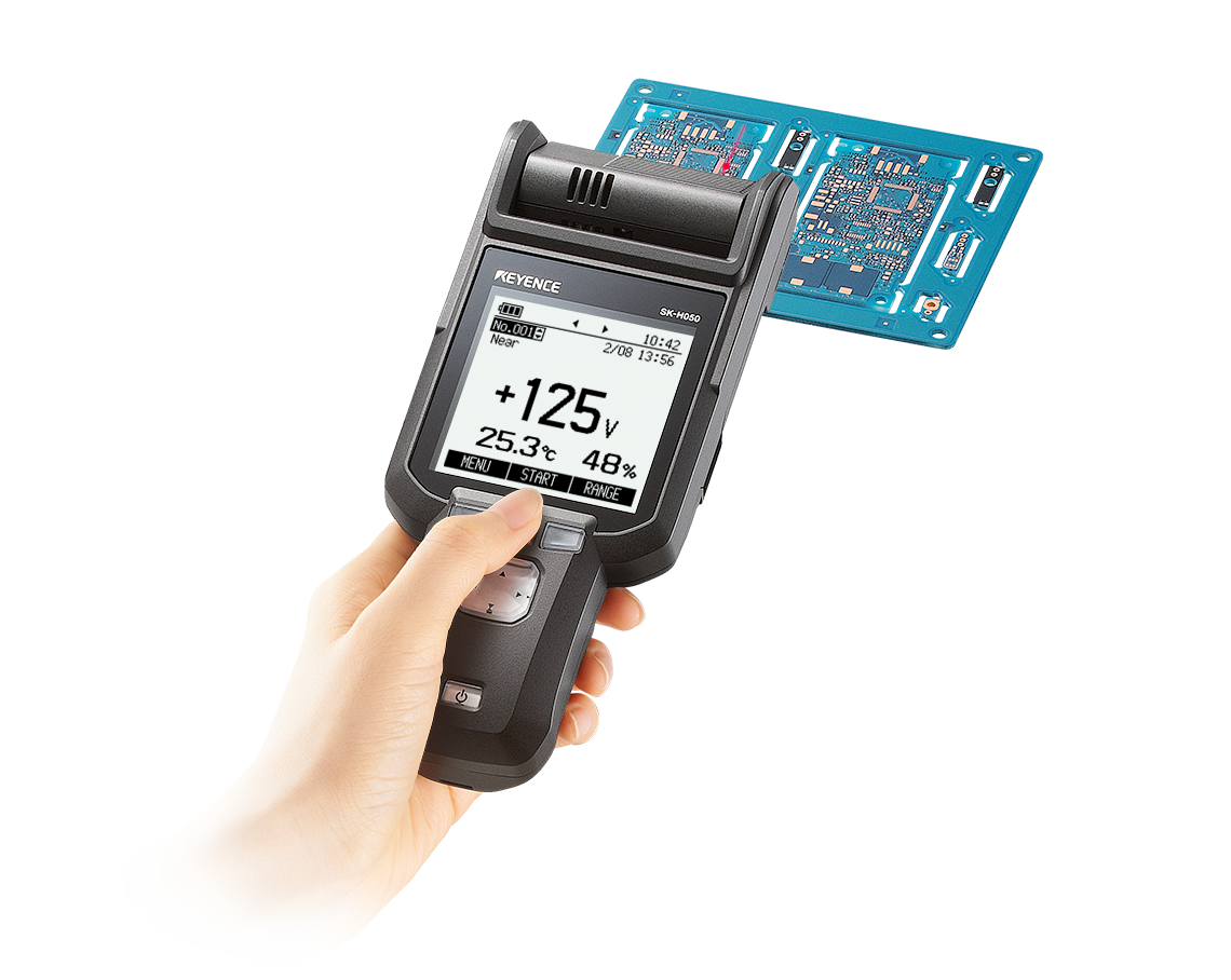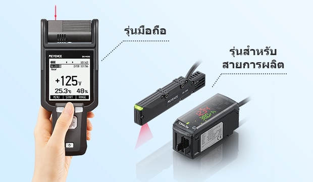 เซนเซอร์ตรวจจับไฟฟ้าสถิตชนิดมือถือของ KEYENCE เป็นอุปกรณ์ที่มีการใช้งานอย่างแพร่หลายในฐานะรุ่นเริ่มต้นสำหรับการวัดปริมาณประจุไฟฟ้าสถิต ทั้งยังสามารถวัดอุณหภูมิและความชื้นที่ช่วยให้เข้าใจความสัมพันธ์ระหว่างสภาพแวดล้อมและไฟฟ้าสถิตได้อย่างครอบคลุม มาพร้อมความสามารถในการประเมินประสิทธิภาพของการกำจัดไฟฟ้าสถิต เช่น ความเร็วและสมดุลของประจุไอออนของเครื่องกำจัดไฟฟ้าสถิต ด้วยเหตุนี้ เซนเซอร์รุ่นนี้จึงเป็นอุปกรณ์ที่ส่งเสริมให้การทำงานและการบำรุงรักษาเครื่องกำจัดไฟฟ้าสถิตมีประสิทธิภาพ ทั้งยังช่วยป้องกันปัญหาไฟฟ้าสถิตได้อีกด้วย เซนเซอร์ชนิดมือถือรุ่นนี้มีส่วนช่วยให้การวัดมีความยืดหยุ่นในทุกตำแหน่งและตอบโจทย์ความต้องการที่หลากหลายของการประยุกต์ใช้งานที่หน้างานซึ่งเป็นข้อได้เปรียบสำคัญ