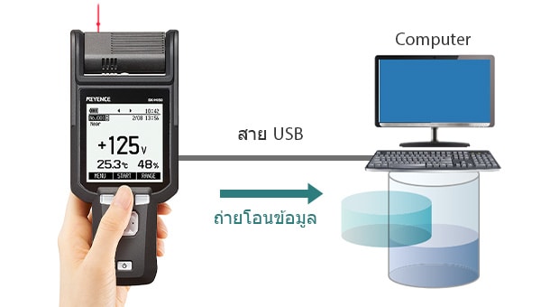 หน่วยความจำสำรองภายในเซนเซอร์สามารถบันทึกข้อมูลการวัดได้สูงสุด 100 ชุด โดยสามารถถ่ายโอนข้อมูลที่บันทึกไว้ผ่านสาย USB ไปยังคอมพิวเตอร์เพื่อบันทึกเป็นข้อมูล CSV ได้