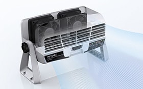 การประกอบพัดลมกำลังแรงลงในโครงสร้างขนาดกะทัดรัดยังทำให้ SJ-F ซีรีส์ สามารถกำจัด ไฟฟ้ าสถิตในพืน้ ที่กว้างได้เร็วที่สุดเมื่อเทียบกับเครื่องในระดับเดียวกันอีกด้วย