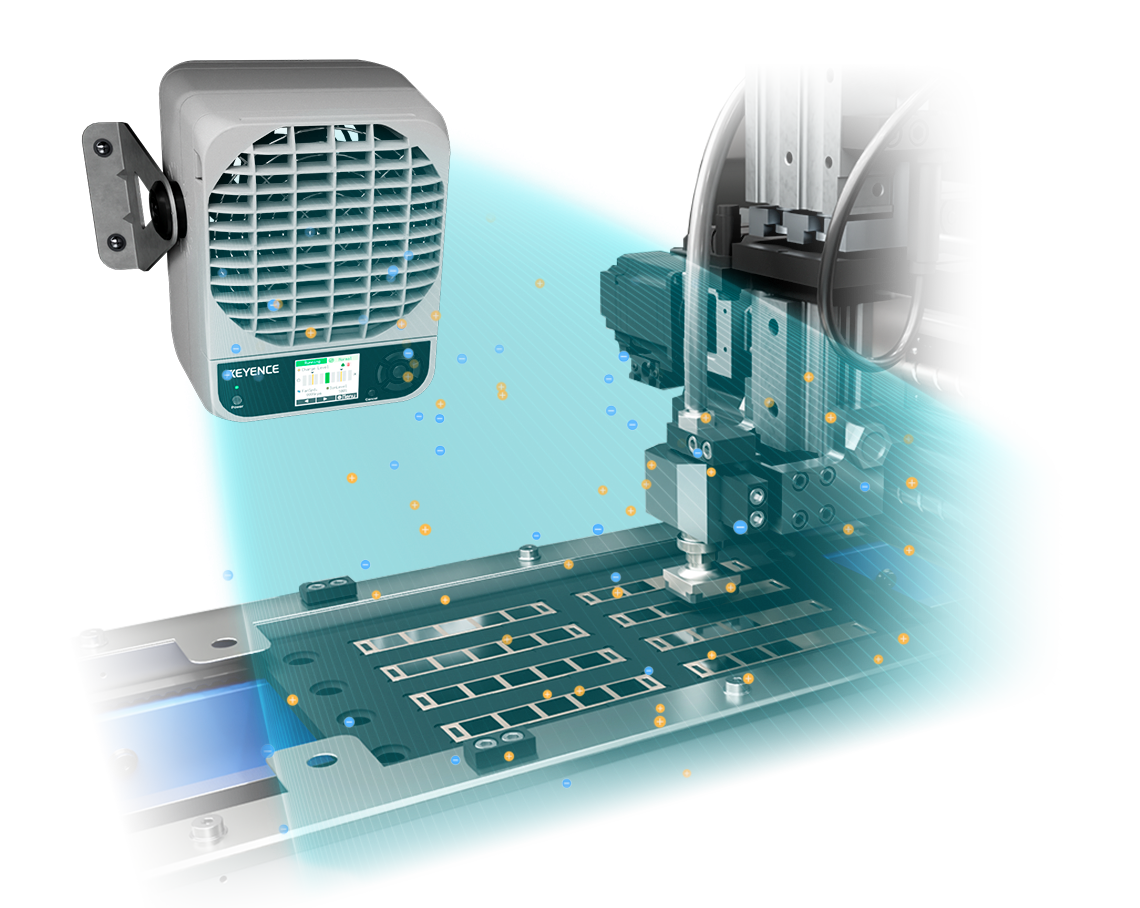 ด้วยการใช้โครงสร้าง Supersonic ที่พัฒนาขึ้นเป็นครั้งแรกในประวัติศาสตร์ของเครื่องสร้างประจุไอออน KEYENCE ได้เพิ่มความเร็วของไอออนให้สูงเกินความเร็วเสียง ทำให้สามารถกำจัดไฟฟ้าสถิตได้ด้วยความเร็วที่สูงที่สุดในโลก ด้วยปริมาณลมที่น้อยมาก