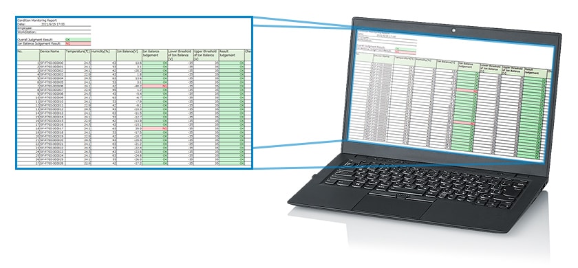 ระบุสถานะของอุปกรณ์ได้สูงสุด 100 เครื่องด้วยพีซีเพียงเครื่องเดียวทั้งที่ไม่ได้อยู่หน้างาน นอกจากนี้ยังสามารถเปลี่ยนแปลงการตั้งค่าได้ตามต้องการและส่งออกเป็นไฟล์ Excel ได้อีกด้วย