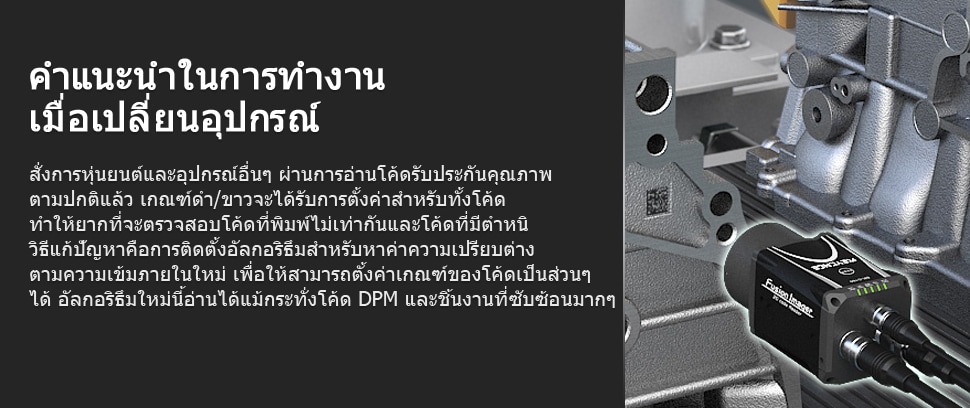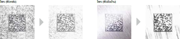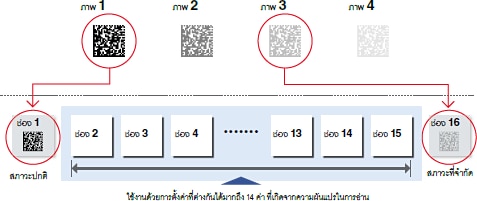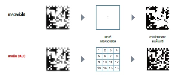 โดยทั่วไป ค่าเกณฑ์สีดำ/สีขาวจะได้รับการตั้งค่าไว้สำหรับโค้ดทั้งหมดซึ่งทำให้การตรวจจับโค้ดที่พิมพ์อย่างไม่สม่ำเสมอทำได้ยากลำบาก เพื่อการแก้ไขปัญหานี้ เราได้พัฒนาอัลกอริธึมสำหรับหาค่าความเปรียบต่างตามความเข้มภายในแบบใหม่ เพื่อให้สามารถตั้งค่าเกณฑ์สำหรับแต่ละส่วนของโค้ดได้ อัลกอริธึมนี้สามารถจำแนกประเภทสีดำ/สีขาวได้อย่างแม่นยำ แม้ในโค้ด DPM ที่มักมีความหนาแน่นของงานพิมพ์ไม่สม่ำเสมอ