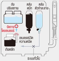 ความหนืดของหมึกในถังหลักจะได้รับ การวัด ตัวทำละลายจะส่งเข้าถังหลักจาก ถังปรับสภาพตามค่าความหนืดที่อ่านได้ จึงไม่เกิดการสูญเปล่าเพราะถังปรับสภาพ จะถูกใช้ก่อน