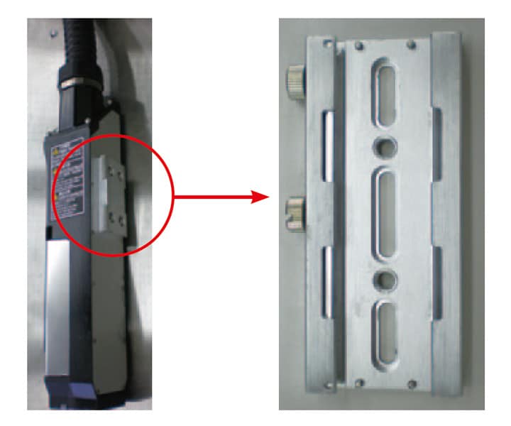 คุณจะติดตั้งหัวเครื่องพิมพ์อิงค์เจ็ทไว้กับเครื่องจักร ที่มีอยู่แล้วได้อย่างไร MK-G ซีรีส์ของ KEYENCE มีชุดประกอบแบบกดครั้งเดียวที่พัฒนามาเพื่อการ ติดตั้งหัวพิมพ์ที่รวดเร็วและง่ายดาย แผ่นติดตั้งจะมี รูสกรูแบบทั่วไปเพื่อให้ติดตั้งแผ่นเข้ากับโครงสร้าง รอบข้างต่างๆ ได้ สามารถติดหัวของ MK-G เข้ากับ แผ่นติดตั้งหรือถอดออกได้ง่ายๆ โดยการยึดสกรู ยึดแผ่นติดตั้งจะช่วยให้ผู้ใช้สามารถติดตั้งอุปกรณ์ได้ อย่างยืดหยุ่นและสะดวกสบาย