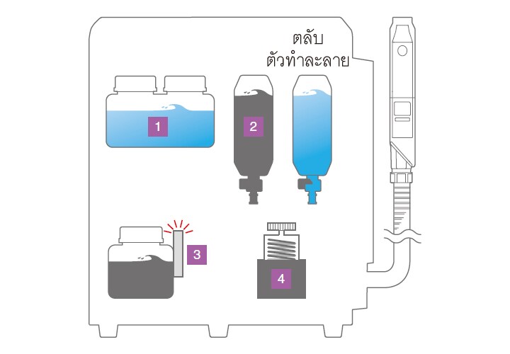 ตัวทำละลายที่ใช้ระหว่างการทำความสะอาดโดยอัตโนมัติเมื่อเปิดเครื่อง ปิดเครื่องและ บำรุงรักษาจะถูกเก็บไว้ใน