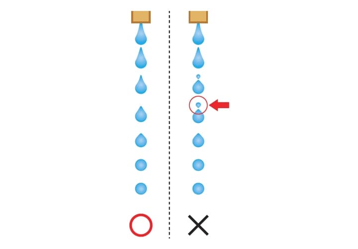 ความหนืดของหมึกจะเปลี่ยนแปลงตลอดเวลา เมื่อความหนืดของหมึกเปลี่ยน เวลาที่ใช้สร้างละอองหมึกและปริมาณประจุ