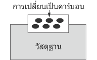 เมื่อพื้นผิวได้รับพลังงานสูง โมเลกุลของธาตุขนาดใหญ่รอบๆ วัสดุฐานจะกลายเป็นคาร์บอนและเปลี่ยนเป็นสีดำ
