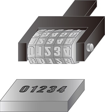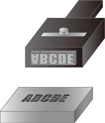 มาร์กตัวอักษรหรือตัวเลขที่มีจำนวนไม่มากแบบใช้งานครั้งเดียวด้วยการยึดตราประทับทีละตัวไว้กับตัวยึด เมื่อต้องมาร์กตัวอักษรจำนวนมากก็สามารถใช้วิธีนี้ในการมาร์กตัวอักษรอย่างเป็นระเบียบได้ในเวลาอันสั้น นอกจากนี้ ยังสามารถติดตั้งเครื่องมือนี้กับแท่นพิมพ์หรือลูกกลิ้งได้อีกด้วย เหมาะสำหรับการมาร์กป้ายชื่อและชิ้นส่วนอื่นๆ ที่ทำจากวัสดุ เช่น อะลูมิเนียม เหล็ก สแตนเลสสตีล ทองเหลืองและเรซิน