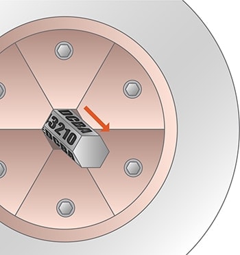เลือกตัวอักษรที่จะมาร์กด้วยแป้นหมุน สามารถติดตั้งเครื่องมือนี้ไว้กับแท่นกดได้เช่นกัน วิธีนี้จะใช้เพื่อมาร์กตัวเลขที่ต่อเนื่องกัน ตัวเลขรุ่น หมายเลขผลิตภัณฑ์และหมายเลขล็อต เหมาะสำหรับมาร์กป้ายชื่อและชิ้นส่วนอื่นๆ ที่ผลิตจากวัสดุ เช่น อะลูมิเนียม เหล็ก และทองเหลือง อีกทั้งยังเหมาะกับการมาร์กสิ่งของที่มีน้ำหนักมากและเคลื่อนย้ายได้ยาก