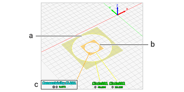 วางสไตลัสบนจุดการวัดบนวงกลม Datum แล้ววางสไตลัสบนจุดการวัดขององค์ประกอบของวงกลมเพื่อวัดความร่วมศูนย์