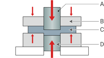 ในการปั๊มขึ้นรูปแบบทั่วไปนั้น ชิ้นงานจะถูกติดตั้งไว้บนแม่พิมพ์และใช้แรงดันในการเจาะ ซึ่งจำเป็นจะต้องเว้นช่องว่างระหว่างแม่พิมพ์และแท่นกดให้เหมาะสม การขึ้นรูปโลหะความละเอียดสูงนั้นจะใช้แรงดันจากทั้งด้านบนและด้านล่างโดยลดช่องว่างให้เหลือน้อยที่สุด