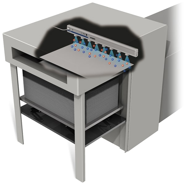 การใช้ระบบกำจัดไฟฟ้าสถิตที่มีการไหลของอากาศเป็นวงกว้างจะช่วยให้สามารถกำจัดอนุภาคแปลกปลอมที่เกาะติดกับชิ้นงานได้ แม้จะไม่มีการจ่ายลมในโรงงานก็ตาม