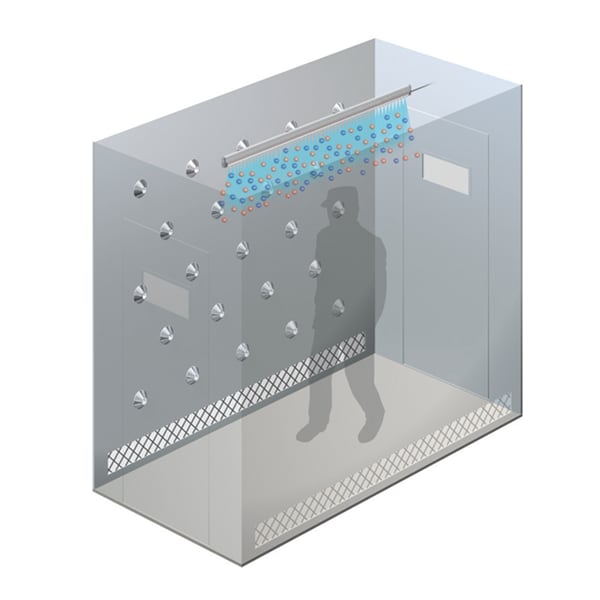 การติดตั้งเครื่องกำจัดไฟฟ้าสถิตในห้องเป่าลมจะช่วยเพิ่มประสิทธิภาพในการขจัดฝุ่นได้ เนื่องจากเป็นพื้นที่ที่มีความเสี่ยงสูงสุดที่จะมีอนุภาคแปลกปลอมเข้าไปในห้องคลีนรูม