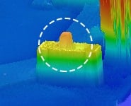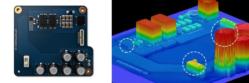 ฉายแสงเป็นหลายแถบด้วยความเร็วสูง เซนเซอร์จับภาพ CMOS ความเร็วสูงพิเศษ และหน่วยประมวลผลความเร็วสูงจะวิเคราะห์ แสงที่สะท้อนมาจากชิ้นงานเพื่อสร้างภาพ 3D ขึ้นมา