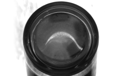 แสงฟลูออเรสเซนต์หักเหอยู่ภายในขวด ทำให้ทำการตรวจสอบปากขวดได้ยาก