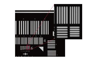 เลนส์เหล่านี้ได้รับการออกแบบให้มีความละเอียดสูงอย่างสม่ำเสมอ ไม่เฉพาะที่จุดกึ่งกลางภาพเท่านั้นแต่รวมถึงขอบรอบนอก เช่นกัน แม้กับที่ขนาดเซลล์ของยูนิตเป็น 3.45 μm/พิกเซล ทุกส่วนของหน้าจอจะแสดงด้วยความละเอียดสูงและความเปรียบต่างสูง